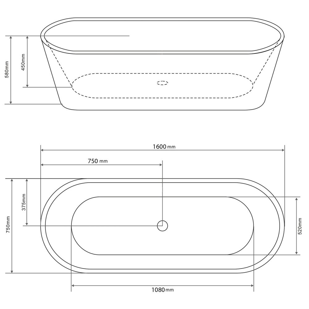 Ванна акриловая Loranto 1600х750х580 отдельностоящая, без перелива, в комплекте с сифоном и опорными ножками, цвет белый (CS-10-160)