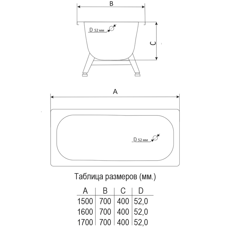 Ванна стальная ВИЗ MARION с опорной подставкой 170х70х40 без ранта, белый ирис (M-71903)