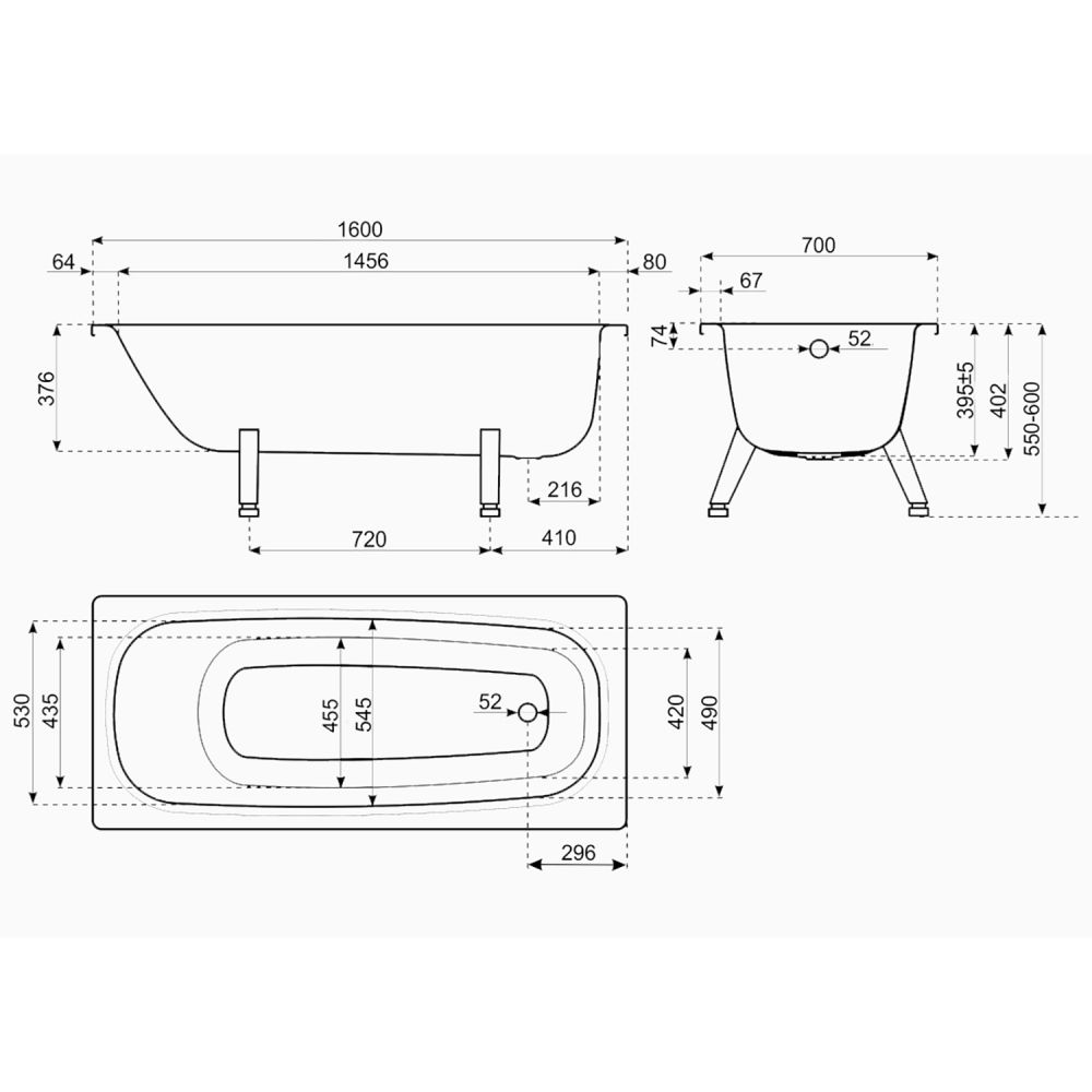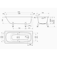 Ванна стальная ВИЗ RIANTO 160х70х40 пристенная, с опорной подставкой, с рантом (RV-160)