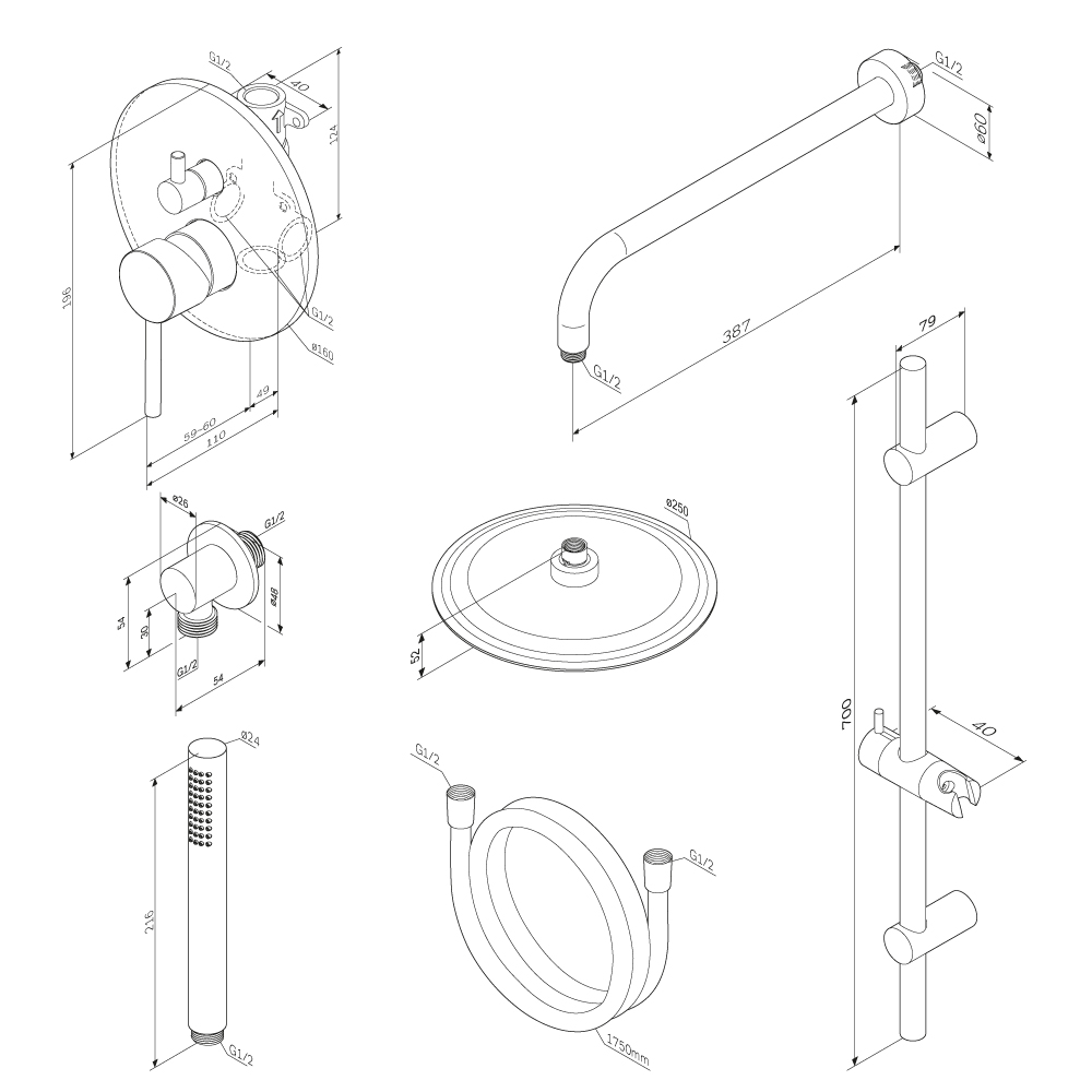 936530000 Scandinavian Pure встраиваемая душевая система с душевым смесителем и штангой, хром