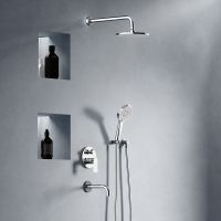 Встраиваемая душевая система из коллекции Apollo станет центром притяжения ванной комнаты. Тонкие линии и четкие грани в сочетании с массивными формами создают исключительную коллаборацию стиля. Полностью скрытые коммуникации: практичное и современное решение которое соответствует минималистичному скандинавскому стилю. Ничего лишнего. Увеличенные душевые лейки и 3 режима ручного душа позволят полностью насладиться душевыми процедурами - взбодриться утром и расслабится вечером. Верхний душ диаметром 250 мм ручной душ диаметром 125 мм. Керамический картридж Light Flow обеспечивает плавное управление ручкой смесителя и оптимальную регулировку температуры и мощности потока. Инновационное покрытие High Gloss надежно защищает хромовую поверхность смесителя от мелких повреждений и сохраняет ювелирный блеск на долгие годы. ""
