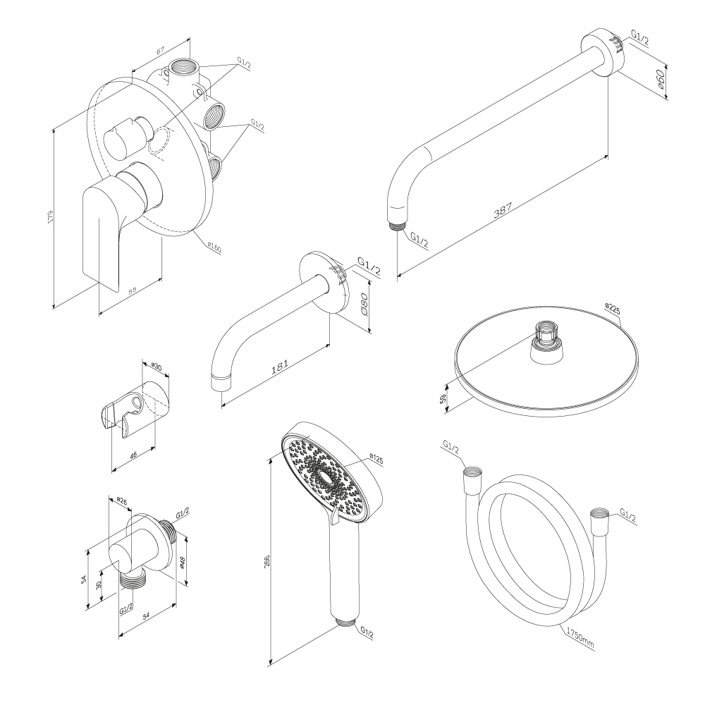 947510000 Apollo встраиваемая душевая система с ванно-душевым смесителем и изливом, хром