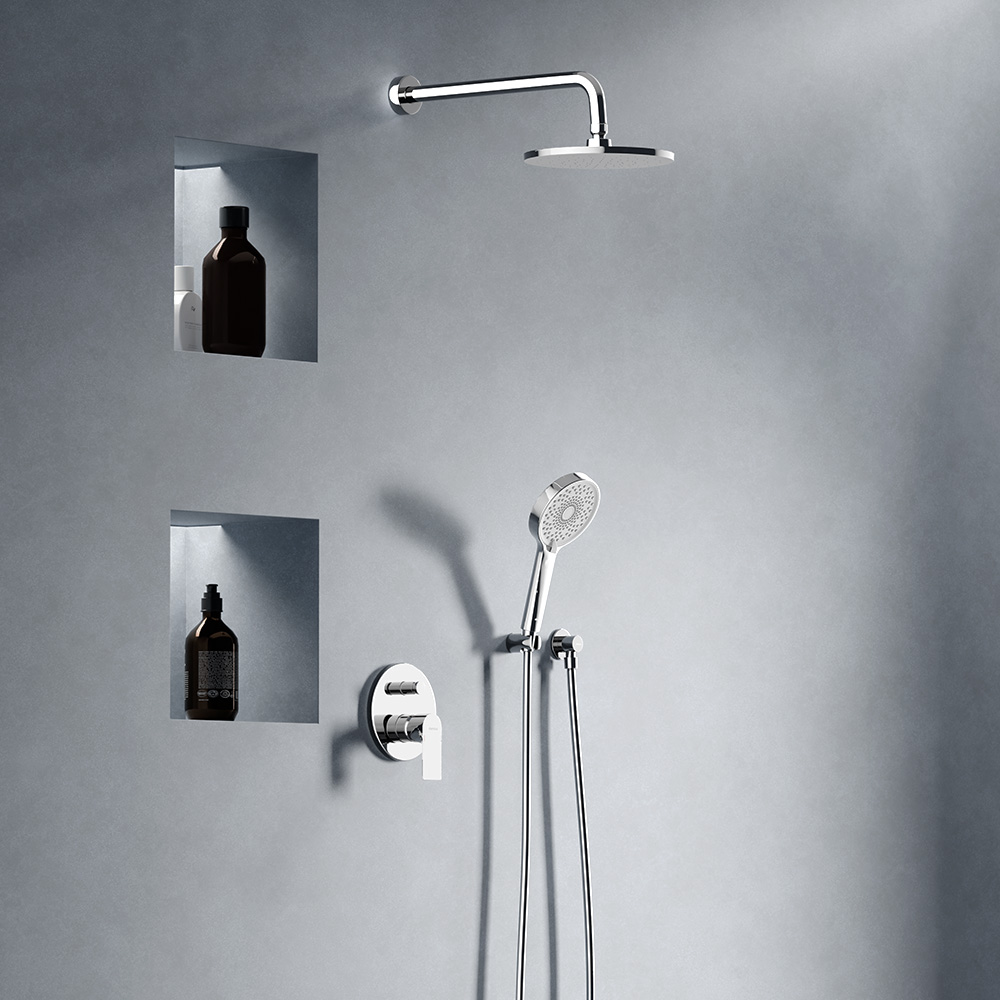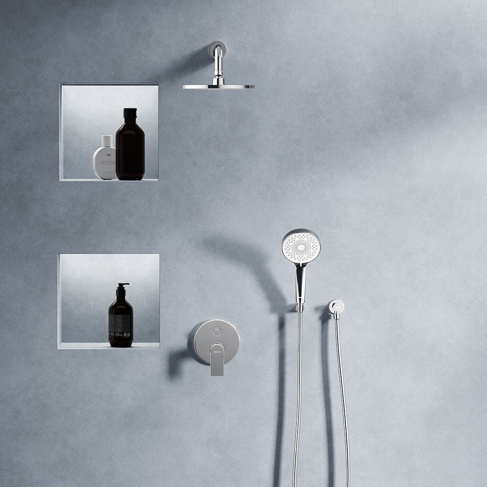 Встраиваемая душевая система из коллекции Apollo станет центром притяжения ванной комнаты. Тонкие линии и четкие грани в сочетании с массивными формами создают исключительную коллаборацию стиля. Полностью скрытые коммуникации: практичное и современное решение которое соответствует минималистичному скандинавскому стилю. Ничего лишнего. Увеличенные душевые лейки и 3 режима ручного душа позволят полностью насладиться душевыми процедурами - взбодриться утром и расслабится вечером. Верхний душ диаметром 250 мм ручной душ диаметром 125 мм. Керамический картридж Light Flow обеспечивает плавное управление ручкой смесителя и оптимальную регулировку температуры и мощности потока. Инновационное покрытие High Gloss надежно защищает хромовую поверхность смесителя от мелких повреждений и сохраняет ювелирный блеск на долгие годы. ""