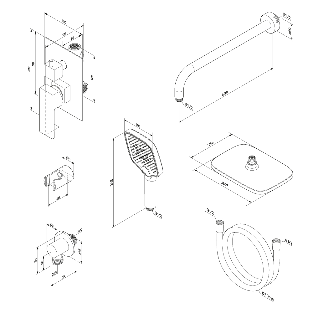 Встраиваемая душевая система со смесителем для душа Damixa Gala 953520000, хром