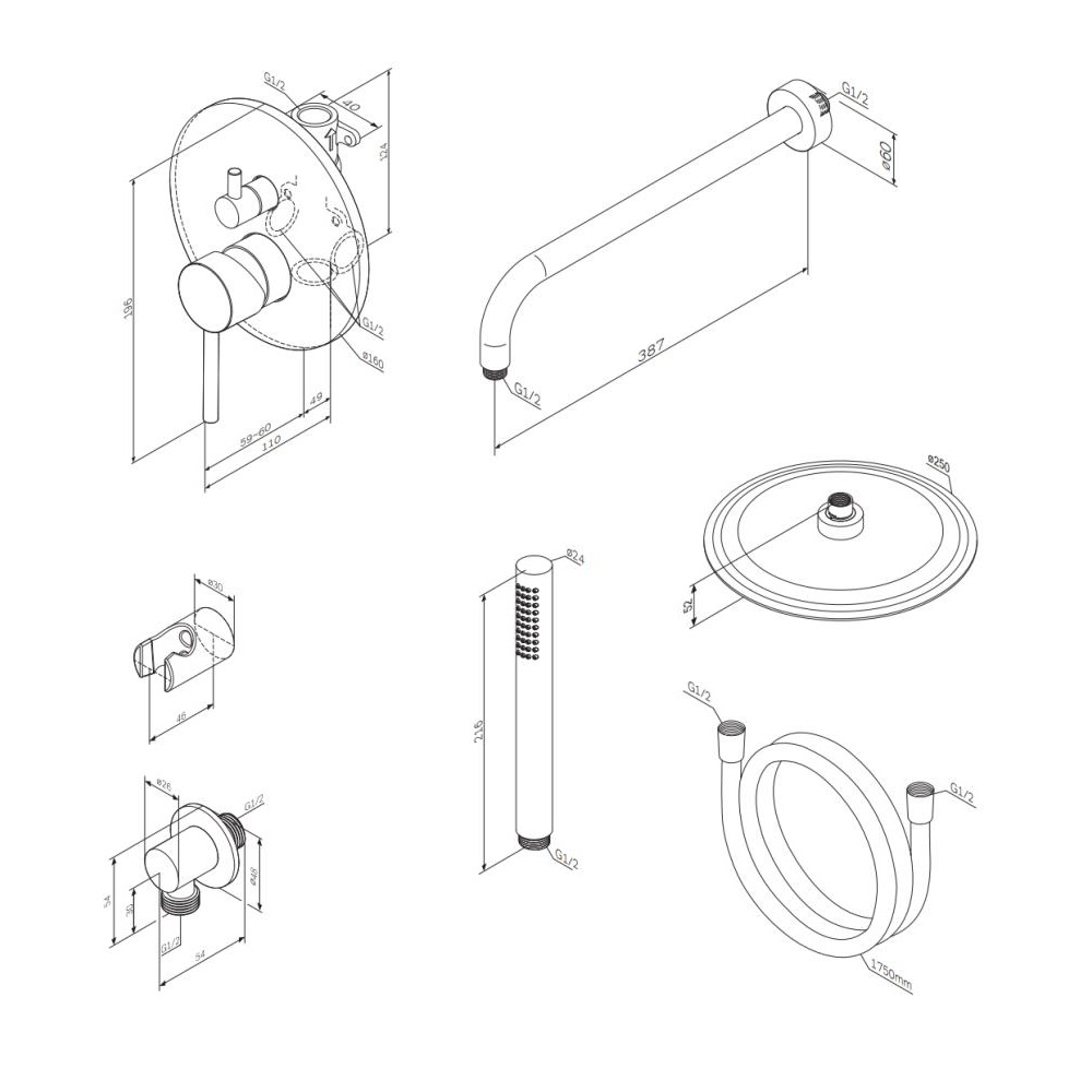 Встраиваемая душевая система со смесителем для душа Damixa Scandinavian Pure 936520000, хром