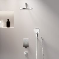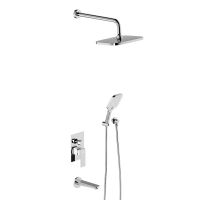 Душевая система Gala обладает мягкими геометричными формами которые идеально впишутся в современную ванную комнату. Простая и минималистичная на первый взгляд она чрезвычайно функциональна и удовлетворит даже самого искушенного пользователя. А полностью скрытые коммуникации освободят дополнительное пространство для реализации самых смелых дизайнерских идей. Настоящее SPA прямо у вас дома: увеличенный размер тропической лейки с регулируемым углом наклона и 3 режима ручного душа сделают ваши ежедневные ритуалы незабываемыми. Простота и минимализм во всем: переключайте потоки воды между ручной тропической лейкой и изливом плавным поворотом дивертора. Инновационное покрытие High Gloss гарантирует чрезвычайную прочность душевой системы надежно защищая хромовую поверхность от механических повреждений коррозии и потери цвета. ""