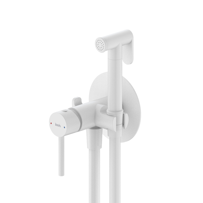 Встраиваемый смеситель с гигиеническим душем, белый матовый, IDDIS, 005WTR0i08