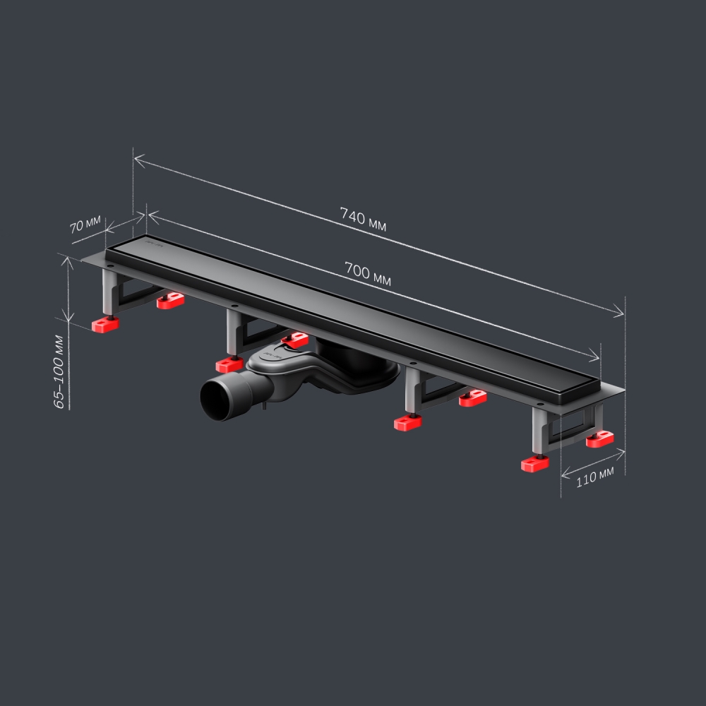 Детально проработанная форма изделия точные выверенные линии. Представляем инновационный трап для душа Masterflow. Универсальная двухсторонняя решетка трапа может быть использована как самостоятельная декоративная вставка либо как база для вклейки плитки. Трап для душа имеет высокую пропускную способность 50 л/мин. Обладает комбинированным затвором: сухим магнитным и гидрозатвором проверенной технологией. Данная технология гарантирует 100% защиту от проникновения запахов из канализации высокую надежность и долговечность. Выдерживает даже самые большие механические нагрузки. Поворотный сифон на 360 градусов позволяет установить трап наиболее удобным и комфортным образом. Продукт обладает низкой высотой монтажа и возможностью регулировки что предполагает экономию бюджета при заливке пола. Трап выполнен из высококачественной нержавеющей стали марки AISI 304. Выход разработан на два диаметра: 40 и 50 мм которые выбираются в процессе монтажа. Размер изделия 70 см. Дизайн трапа выполнен в элегантном матовом черном цвете.