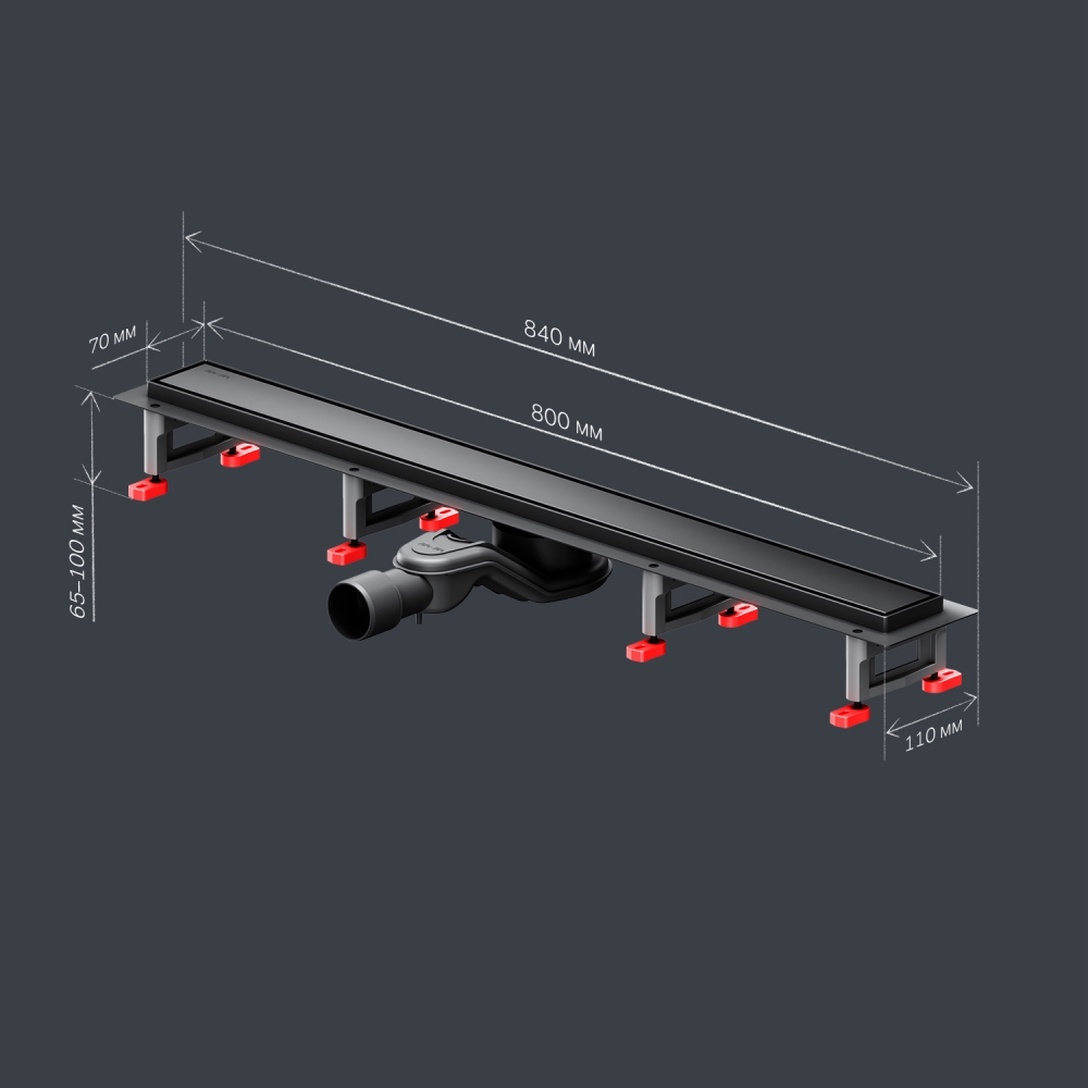 W01SC-U11-080-04BM MasterFlow Трап AM.PM для душа линейный универс затвор Tile 80см цвет черн мат
