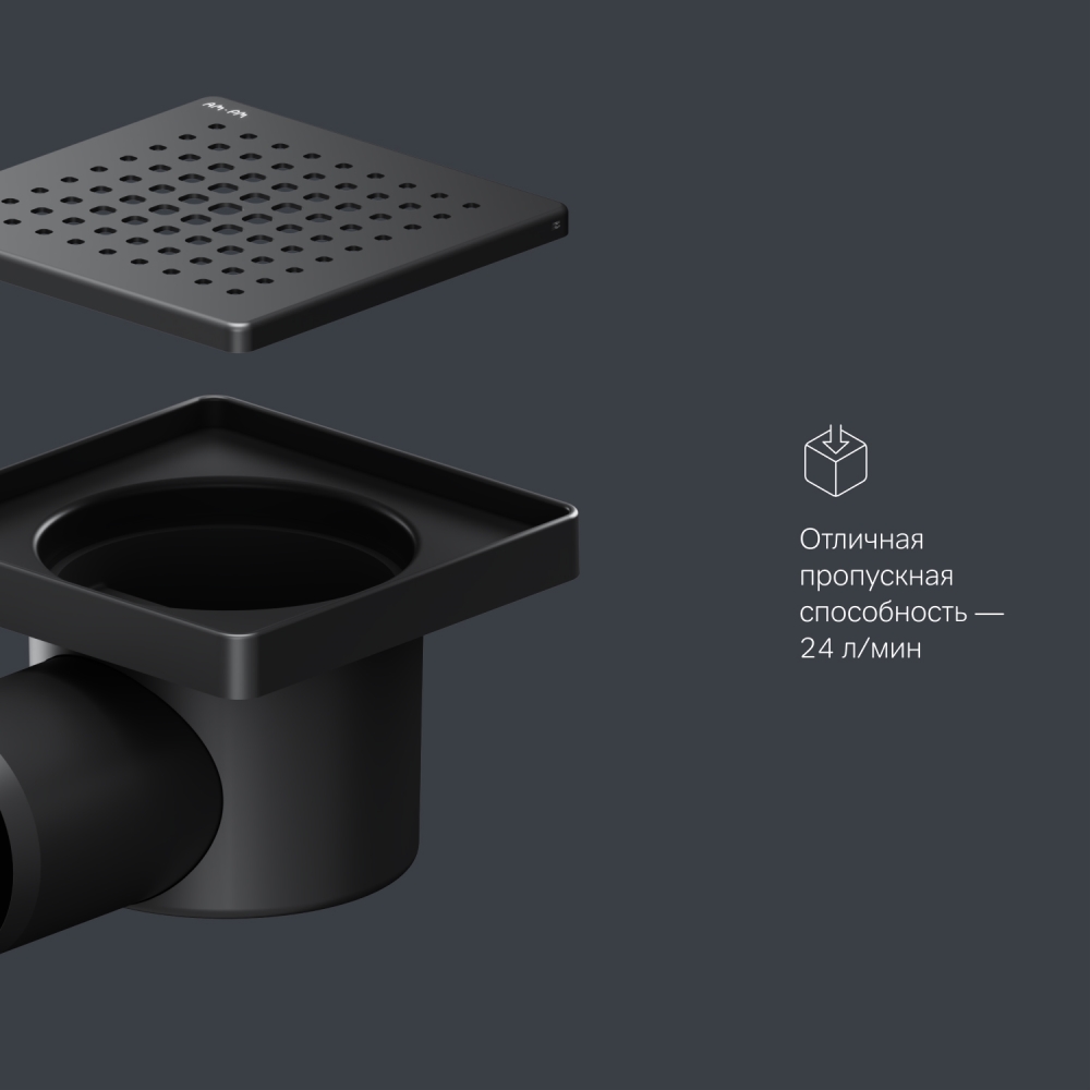 Соединение непревзойденного дизайна и функциональности в трапе для душа квадратной формы PrimeFlow Point. Подходит для любых ванных комнат. Обладает мокрым затвором что помогает блокировать неприятные запахи. Идеален для ежедневного использования. Корпус выполнен без использования сварки что предполагает надежность изделия и защиту от повреждений. Выход изделия на 50 мм. Размер трапа 10 см. Дизайн продукта выполнен в элегантном матовом черном цвете.