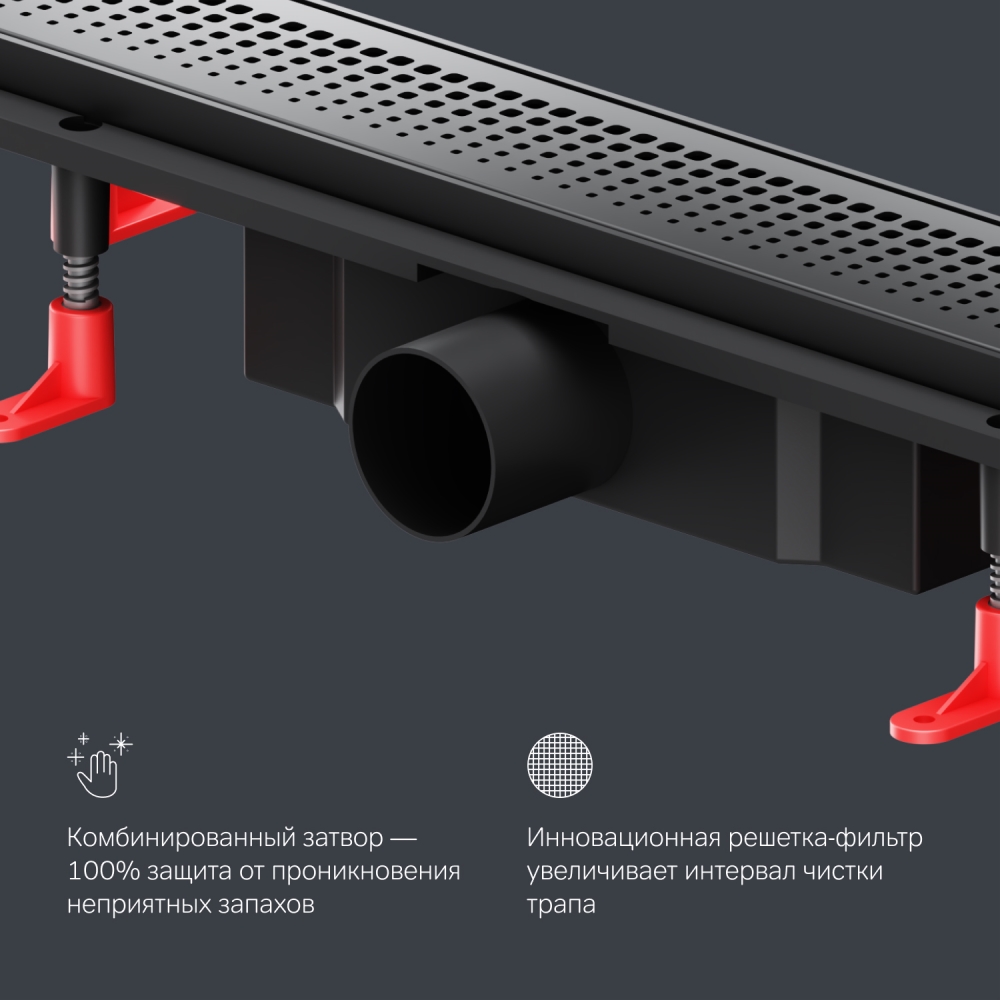 Представляем уникальный трап для душа PrimeFlow с ультрамодной дизайнерской решеткой. Невероятно высокая скорость слива - 45 л/мин благодаря двухкамерному комбинированному затвору. Надежность и долговечность изделия. Легкое обслуживание трапа: простая разборка и чистка сифона. Продукт обладает низкой высотой монтажа и возможностью регулировки что предполагает экономию бюджета при заливке пола. Трап имеет инновационную конструкцию решетки с фильтром что значительно увеличивает межсервисный интервал. Размер изделия 50 см. Дизайн продукта выполнен в элегантном черном матовом цвете.