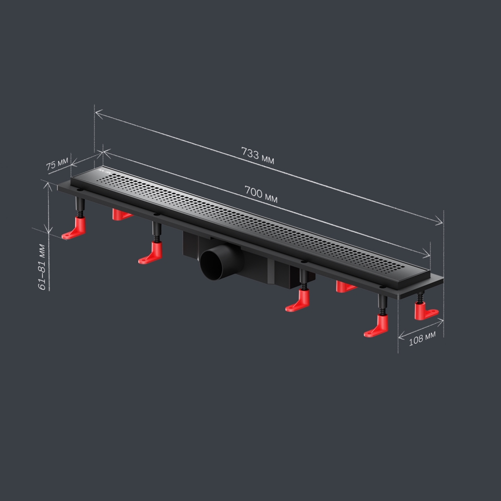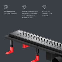 Представляем уникальный трап для душа PrimeFlow с ультрамодной дизайнерской решеткой. Невероятно высокая скорость слива - 45 л/мин благодаря двухкамерному комбинированному затвору. Надежность и долговечность изделия. Легкое обслуживание трапа: простая разборка и чистка сифона. Продукт обладает низкой высотой монтажа и возможностью регулировки что предполагает экономию бюджета при заливке пола. Трап имеет инновационную конструкцию решетки с фильтром что значительно увеличивает межсервисный интервал. Размер изделия 70 см. Дизайн продукта выполнен в элегантном черном матовом цвете.