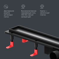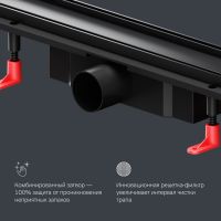 Непревзойденный ультрамодный дизайн детально проработанная форма изделия точные выверенные линии. Представляем инновационный трап для душа PrimeFlow. Универсальная двухсторонняя решетка трапа может быть использована как самостоятельная декоративная вставка либо как база для вклейки плитки. Невероятно высокая скорость слива - 45 л/мин благодаря двухкамерному комбинированному затвору. Надежность и долговечность изделия. Легкое обслуживание трапа: простая разборка и чистка сифона. Продукт обладает низкой высотой монтажа и возможностью регулировки что предполагает экономию бюджета при заливке пола. Трап имеет инновационную конструкцию решетки с фильтром что значительно увеличивает межсервисный интервал. Размер изделия 70 см. Дизайн продукта выполнен в элегантном черном матовом цвете.