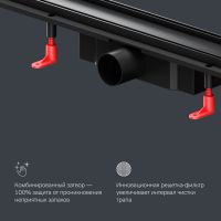 Непревзойденный ультрамодный дизайн детально проработанная форма изделия точные выверенные линии. Представляем инновационный трап для душа PrimeFlow. Универсальная двухсторонняя решетка трапа может быть использована как самостоятельная декоративная вставка либо как база для вклейки плитки. Невероятно высокая скорость слива - 45 л/мин благодаря двухкамерному комбинированному затвору. Надежность и долговечность изделия. Легкое обслуживание трапа: простая разборка и чистка сифона. Продукт обладает низкой высотой монтажа и возможностью регулировки что предполагает экономию бюджета при заливке пола. Трап имеет инновационную конструкцию решетки с фильтром что значительно увеличивает межсервисный интервал. Размер изделия 90 см. Дизайн продукта выполнен в элегантном черном матовом цвете.