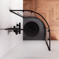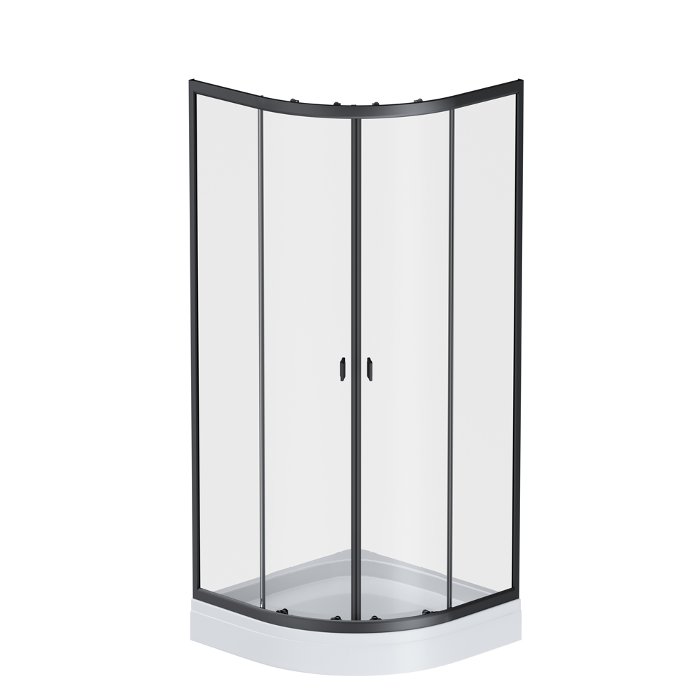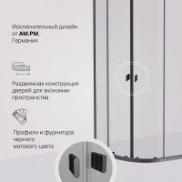 Душевое ограждение X-Joy. Цвет профиля матовый черный безопасное 4 мм стекло прозрачное. Стильные ручки из ABS черного цвета.