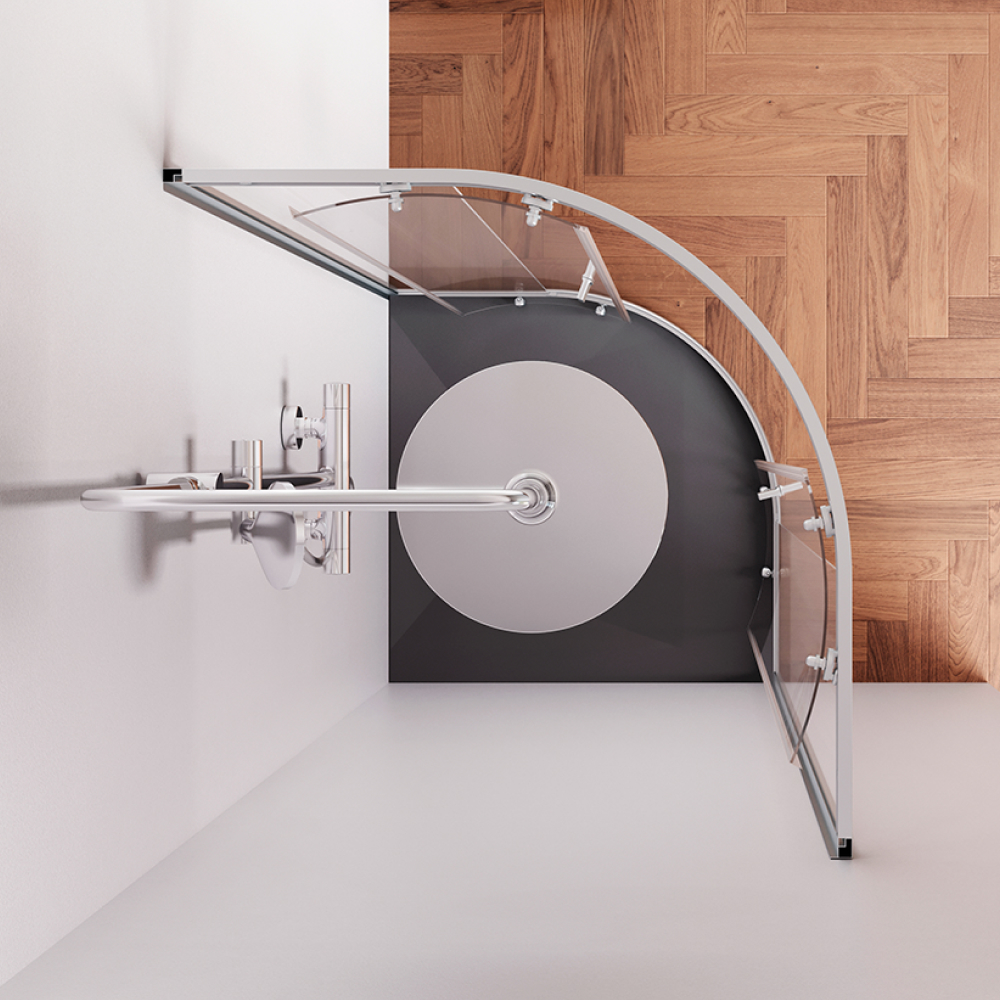 Душевое ограждение X-Joy. Цвет профиля матовый хром безопасное 4 мм стекло прозрачное. Стильные ручки из ABS цвета хром