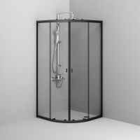 Душевое ограждение X-Joy. Цвет профиля матовый черный безопасное 4 мм стекло прозрачное. Стильные ручки из ABS черного цвета.