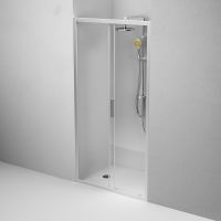 Душевая дверь отличается практичностью и функциональностью. Изделие произведено из ударопрочного закаленного стекла которое надежно фиксируется в нержавеющий алюминиевый профиль при помощи системы скрытых креплений. Ширина конструкции может быть увеличена путем регулирования каркаса на 20 мм что решает проблему неровных стен. Безупречную и плавную работу двери обеспечивают двойные металлические ролики на металлоподшипниках. Конструкция максимально герметична и предотвращает попадание воды на пол ванной комнаты.