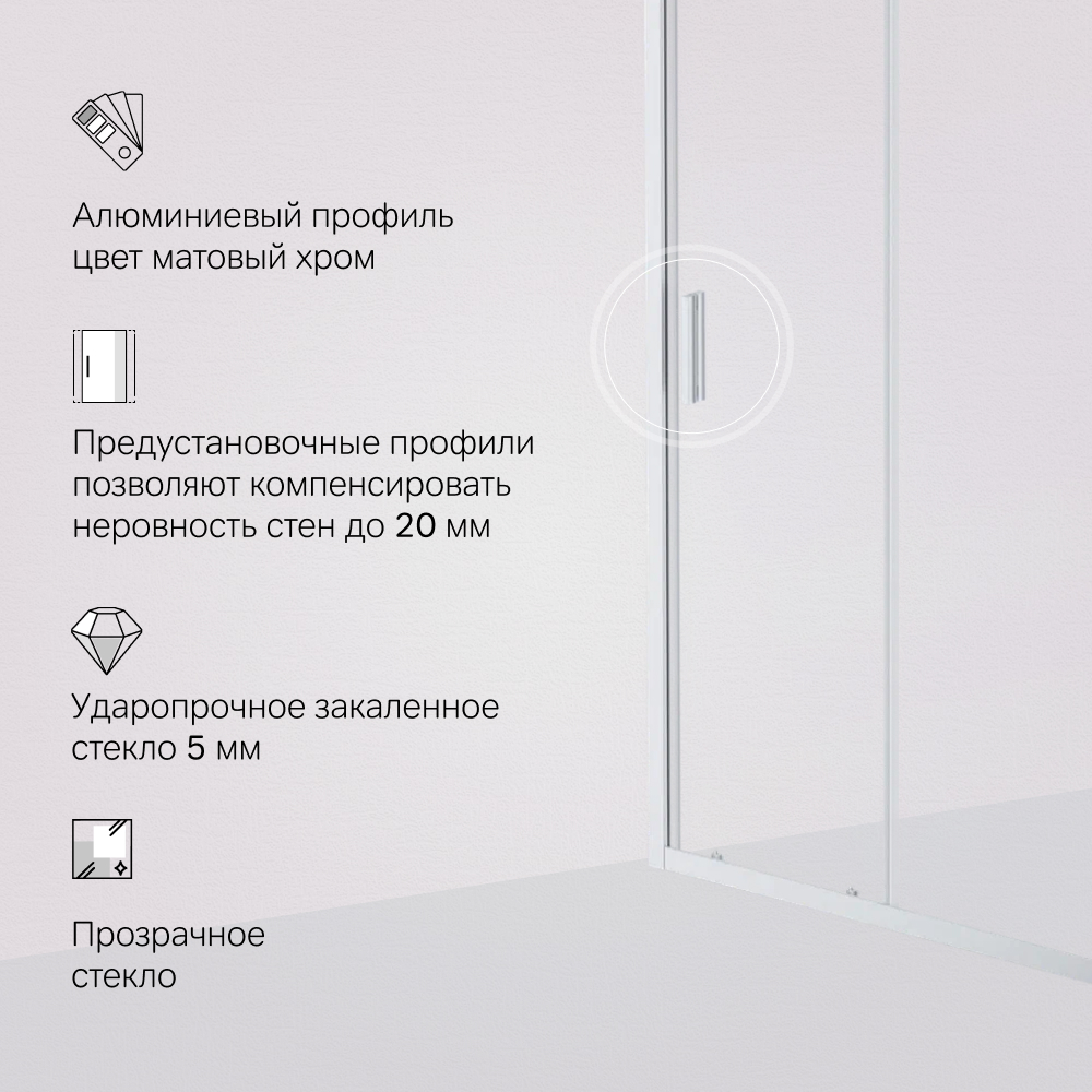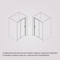 Душевая дверь отличается практичностью и функциональностью. Изделие произведено из ударопрочного закаленного стекла которое надежно фиксируется в нержавеющий алюминиевый профиль при помощи системы скрытых креплений. Ширина конструкции может быть увеличена путем регулирования каркаса на 20 мм что решает проблему неровных стен. Безупречную и плавную работу двери обеспечивают двойные металлические ролики на металлоподшипниках. Конструкция максимально герметична и предотвращает попадание воды на пол ванной комнаты.