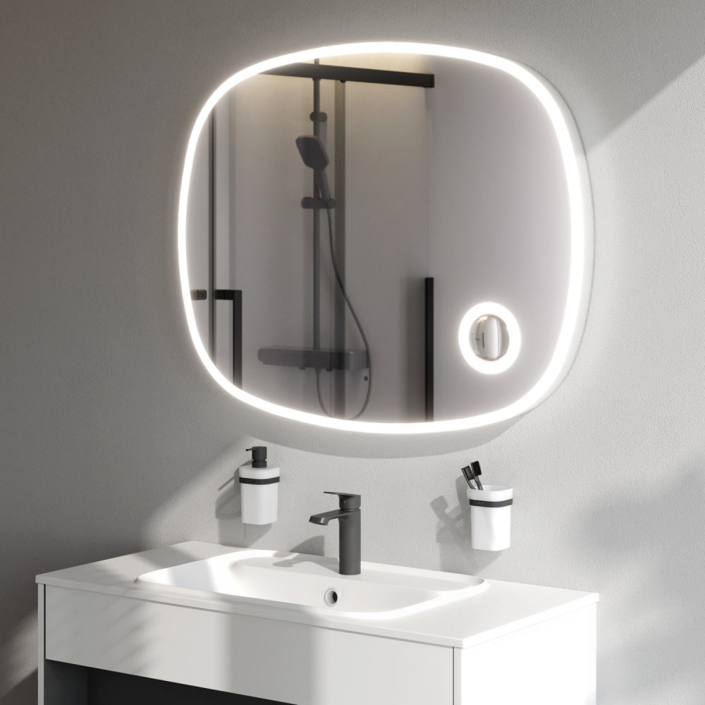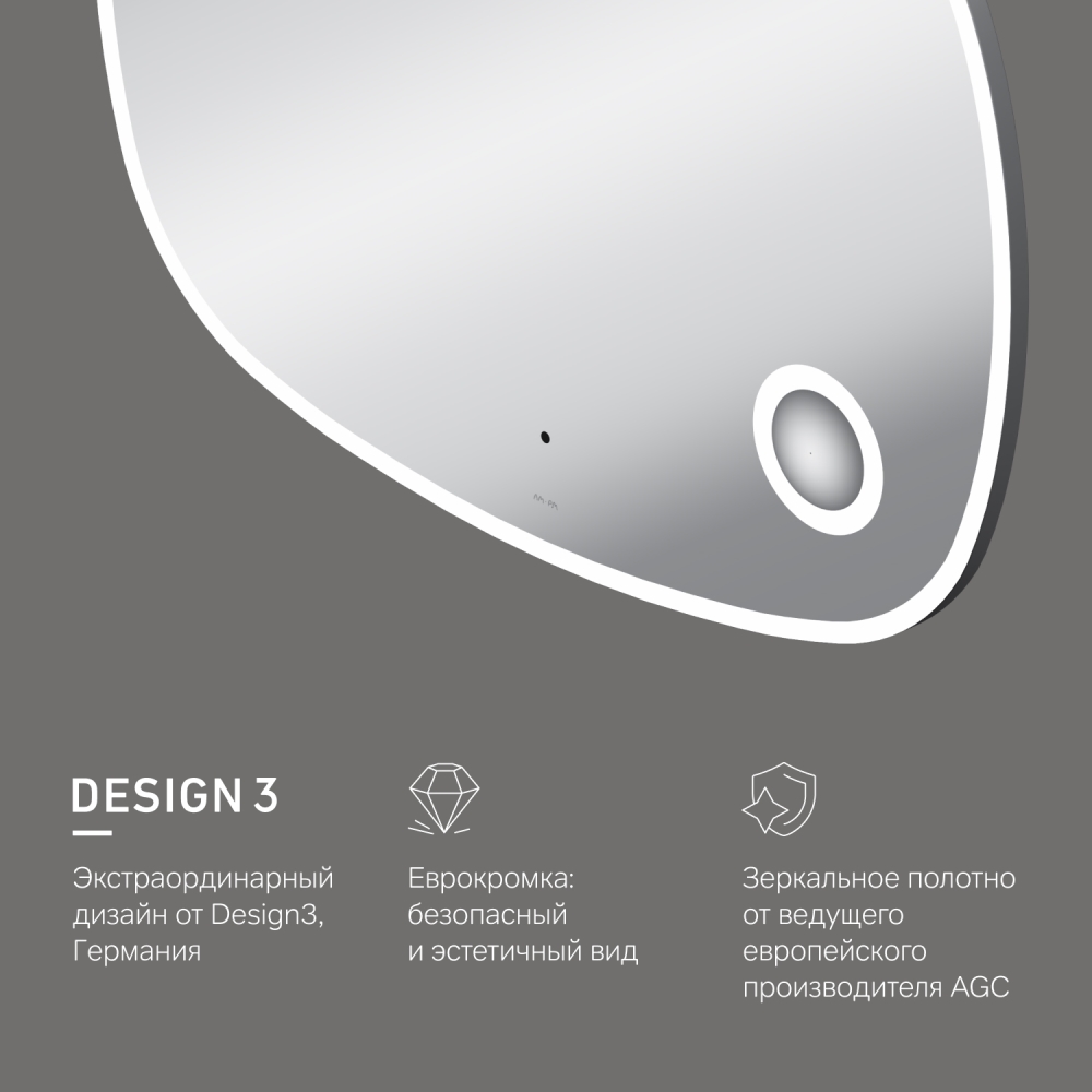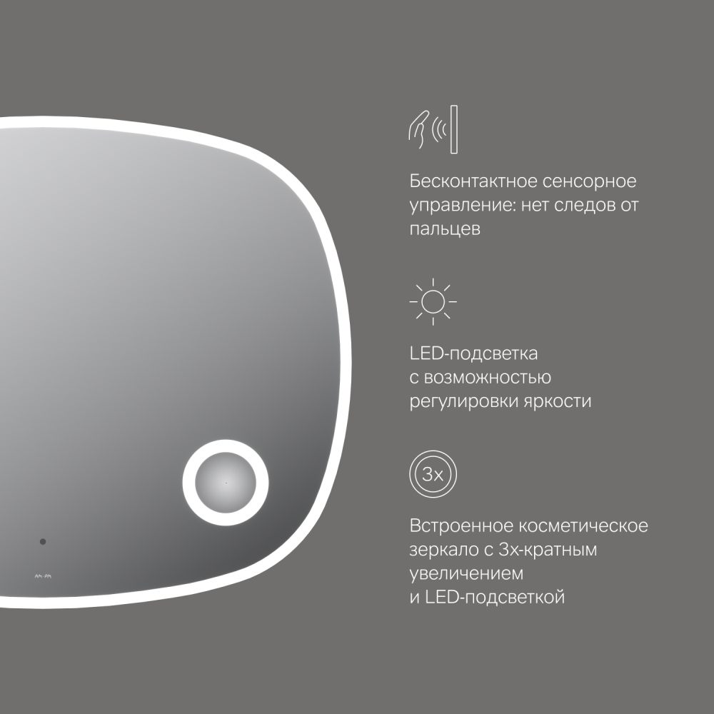 Коллекция мебели Func отличается своей функциональностью вариативностью и мобильностью. Наши инженеры продумали и учли каждую деталь чтобы сделать взаимодействие с продуктами простым и удобным для всех членов семьи. Зеркало с LED-подсветкой – это современный стильный и функциональный элемент интерьера который станет украшением ванной комнаты эффектно преобразит любой интерьер и подчеркнет его индивидуальность. Зеркало изготовлено из зеркального полотна от ведущего европейского производителя зеркал AGC. Край зеркального полотна обработан еврокромкой что обеспечивает надежную защиту от случайных порезов при контакте с изделием. В качестве элемента LED-подсветки используется светодиодная лента которая создает мягкое и равномерное свечение по контуру всего зеркала. Управление подсветкой осуществляется при помощи бесконтактного сенсора нового поколения. Он позволяет управлять включением/выключением и яркостью LED-подсветки без касания зеркального полотна. Зеркало дольше остается чистым. В зеркало встроено косметическое зеркало с трехкратным увеличением и собственной LED-подсветкой. Зеркало поставляется в комплекте с настенным крепежом и инструкцией.