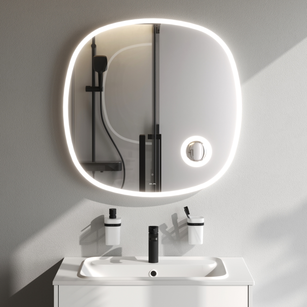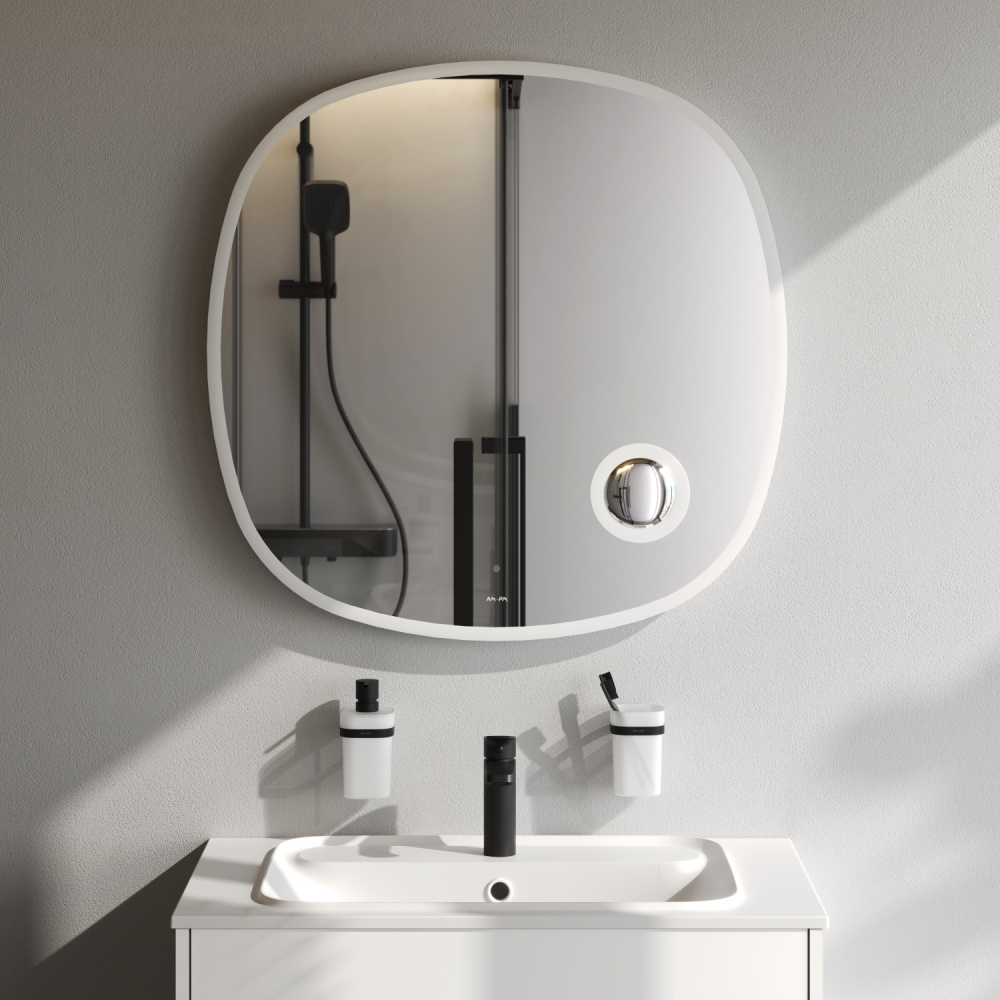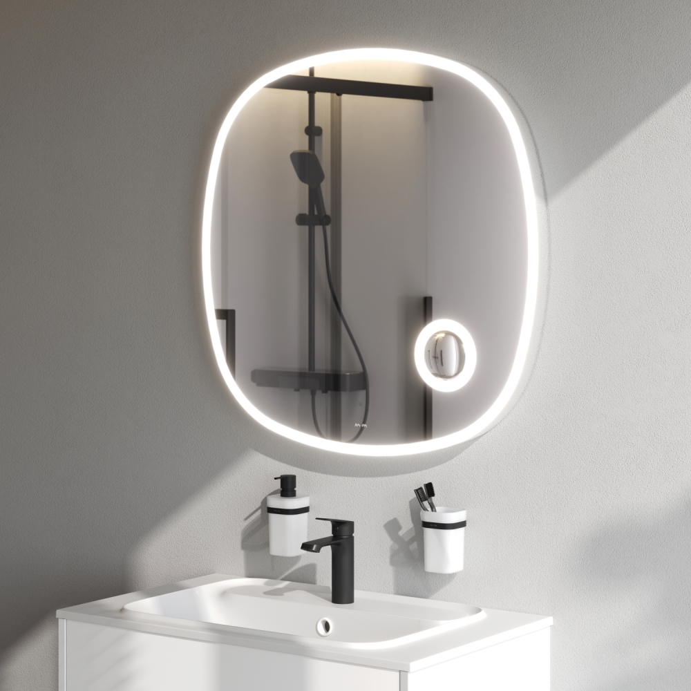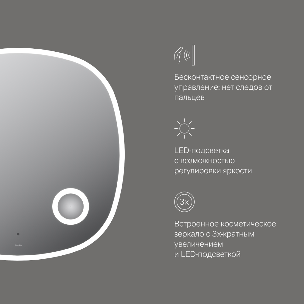 Коллекция мебели Func отличается своей функциональностью вариативностью и мобильностью. Наши инженеры продумали и учли каждую деталь чтобы сделать взаимодействие с продуктами простым и удобным для всех членов семьи. Зеркало с LED-подсветкой – это современный стильный и функциональный элемент интерьера который станет украшением ванной комнаты эффектно преобразит любой интерьер и подчеркнет его индивидуальность. Зеркало изготовлено из зеркального полотна от ведущего европейского производителя зеркал AGC. Край зеркального полотна обработан еврокромкой что обеспечивает надежную защиту от случайных порезов при контакте с изделием. В качестве элемента LED-подсветки используется светодиодная лента которая создает мягкое и равномерное свечение по контуру всего зеркала. Управление подсветкой осуществляется при помощи бесконтактного сенсора нового поколения. Он позволяет управлять включением/выключением и яркостью LED-подсветки без касания зеркального полотна. Зеркало дольше остается чистым. В зеркало встроено косметическое зеркало с трехкратным увеличением и собственной LED-подсветкой. Зеркало поставляется в комплекте с настенным крепежом и инструкцией.