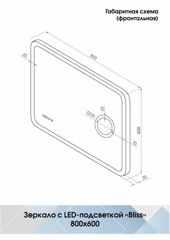 Зеркало Continent "Bliss LED" 800x600 ЗЛП450