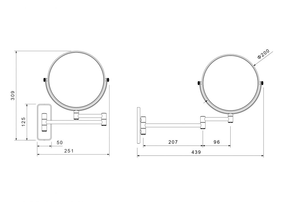 Материал - латунь первая сторона - увеличение 3х вторая сторона - обычное зеркало Упаковано в белую коробку Размеры: 439*251*309мм