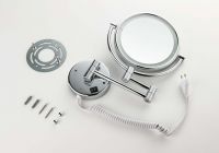 Материал - латунь LED подсветка, белый свет 6400К первая сторона - увеличение 5х вторая сторона - обычное зеркало Белая вилка и провод Упаковано в белую коробку Размеры: 257X257х314мм