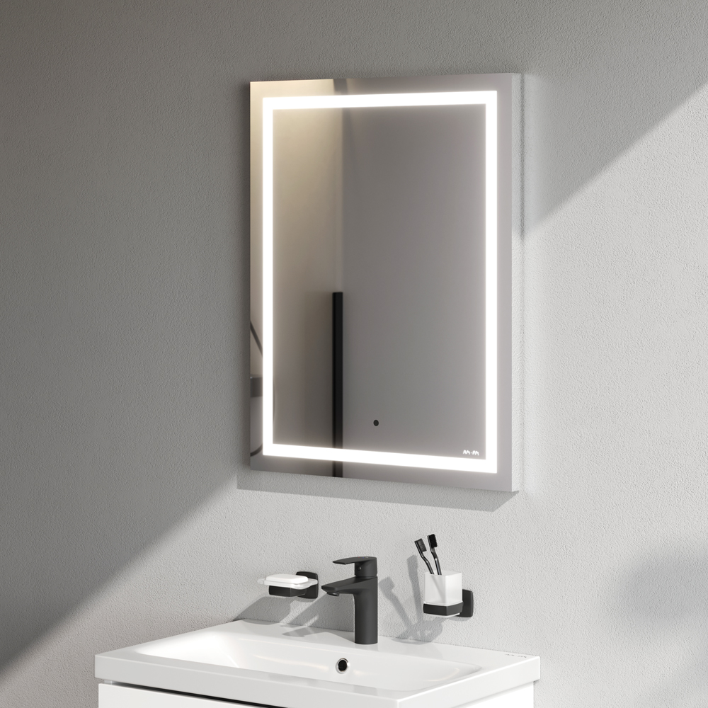 Скрытый механический выключатель сохраняет эстетическую целостность дизайна зеркала, а также гарантирует отсутствие отпечатков пальцев на зеркальном полотне;