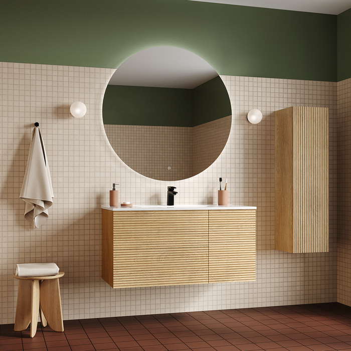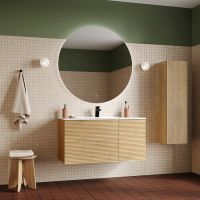 Стильное круглое зеркало Bild диаметром 100 см со встроенной LED-подсветкой. Не имеет рамы, за счёт чего смотрится воздушно и легко, и благодаря универсальному дизайну украсит интерьер любой ванной. Ореольная светодиодная подсветка обеспечивает мягкий фронтальный свет, цвет освещения – холодный. Сенсорное управление подсветкой и диммером с помощью касания. Надежный корпус защищает блок управления от влаги и обеспечивает долгий срок службы. Диодная лента интерьерной подсветки также защищена от влаги. Гарантия на зеркало IDDIS® – 3 года. (с) Авторский текст, июнь 2025 г.