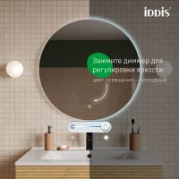 Стильное круглое зеркало Bild диаметром 80 см со встроенной LED-подсветкой. Не имеет рамы, за счёт чего смотрится воздушно и легко, и благодаря универсальному дизайну украсит интерьер любой ванной. - Ореольная светодиодная подсветка обеспечивает мягкий фронтальный свет, цвет освещения – холодный. - Сенсорное управление подсветкой и диммером с помощью касания. - Надежный корпус защищает блок управления от влаги и обеспечивает долгий срок службы. Диодная лента интерьерной подсветки также защищена от влаги. Гарантия на зеркало IDDIS® – 3 года. (с) Авторский текст, август 2024 г.