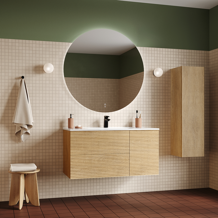 Стильное круглое зеркало Bild диаметром 100 см со встроенной LED-подсветкой и системой антизапотевания. Не имеет рамы, за счёт чего смотрится воздушно и легко, и благодаря универсальному дизайну украсит интерьер любой ванной. Ореольная светодиодная подсветка обеспечивает мягкий фронтальный свет, цвет освещения – холодный. Функция термообогрева предотвращает появление конденсата – нет необходимости протирать зеркало после принятия душа. Сенсорное управление подсветкой, подогревом и диммером с помощью касания. Надежный корпус защищает блок управления от влаги и обеспечивает долгий срок службы. Диодная лента интерьерной подсветки также защищена от влаги. Гарантия на зеркало IDDIS® – 3 года. (с) Авторский текст, июнь 2025 г.