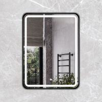 Зеркало в черной алюминиевой раме 60 см для ванной комнаты Comforty Ситара-60, LED-подсветка, бесконтактный сенсор, антизапотевание