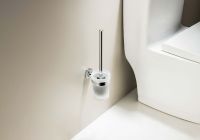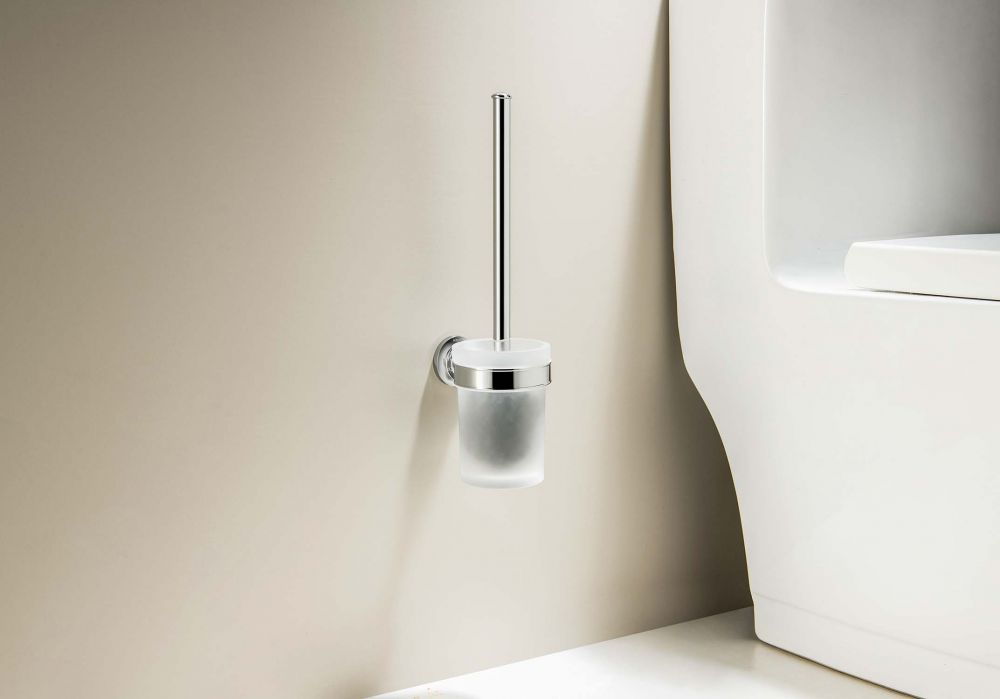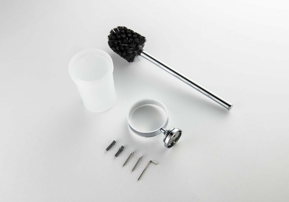 Материал - латунь Стакан из матового стекла Головка ершика из пластика, цвет черный Держатель из латуни Упаковано в белую коробку Размеры: 50*118*337