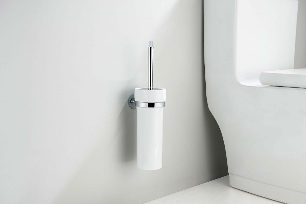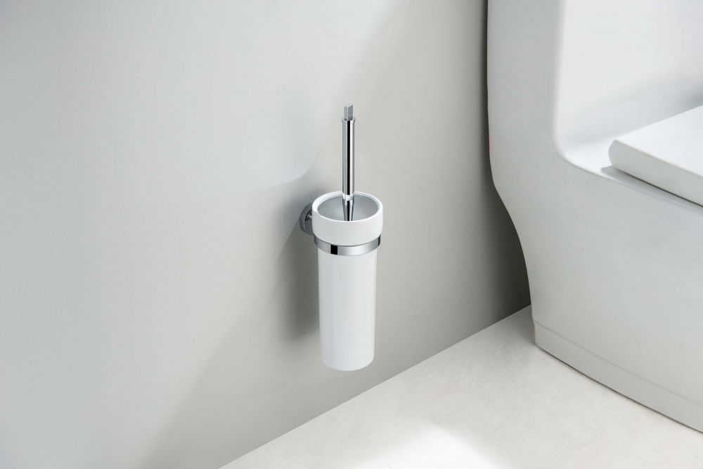 Материал - латунь Керамический стакан Головка ершика из пластика, цвет черный Держатель из нержавейки Упаковано в белую коробку Размеры: