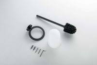 Материал - латунь Стакан из матового стекла Головка ершика из пластика, цвет черный Держатель из нержавейки Упаковано в белую коробку Размеры: 120*137*347мм