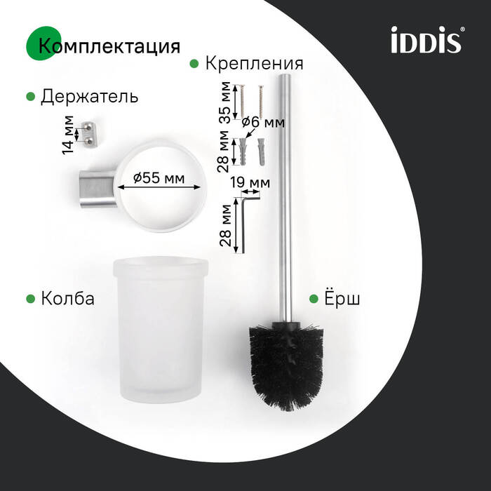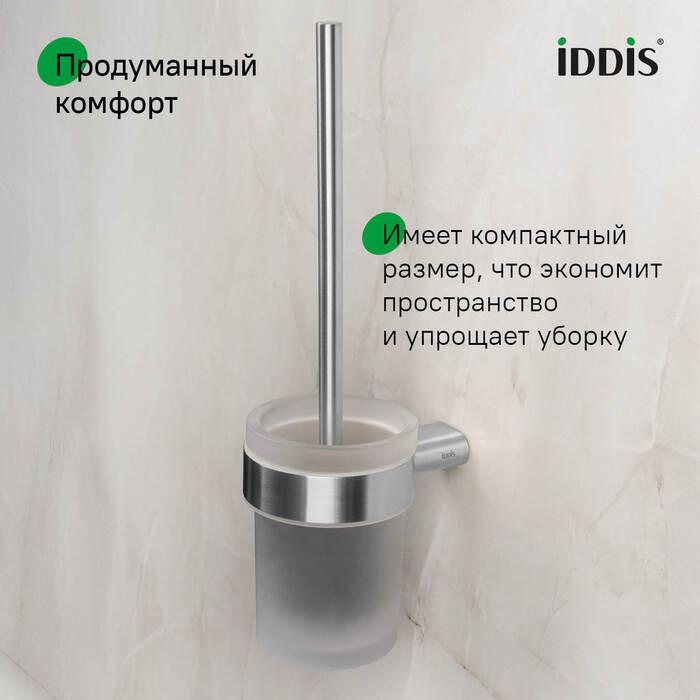 Стильный подвесной ёрш Petite в цвете матового хрома с колбой из матового белого стекла. Petite – базовая коллекция функциональных аксессуаров для ванной с минималистичным, спокойным дизайном и округлыми формами, что делает её универсальным украшением любого современного санузла. Аксессуары в универсальном матовом хроме преобразят интерьер, сделают его завершённым и гармоничным. Идеально дополнят смесители IDDIS® из коллекций Aiger по цвету и форме. Имеет компактный размер, что экономит пространство и упрощает уборку. Щётка идеального размера для удобной уборки не царапает унитаз. Износостойкая, устойчива к агрессивным средствам. Основной материал – нержавеющая сталь, что позволяет эксплуатировать аксессуары во влажном помещении ванной и даже в жёсткой воде на протяжении длительного времени. Повышенная стойкость к бытовой химии и механическим повреждениям благодаря надёжному PVD-покрытию. Уплотнительная прокладка надёжно фиксирует колбу в держателе и предотвращает её повреждение. Ёрш удобен в установке, монтаж не требует профессиональных навыков. Крепёжные элементы скрыты корпусом, что обеспечивает привлекательный и аккуратный внешний вид. Гарантия на аксессуары для ванной IDDIS® – 5 лет. (с) Авторский текст, август 2025 г.