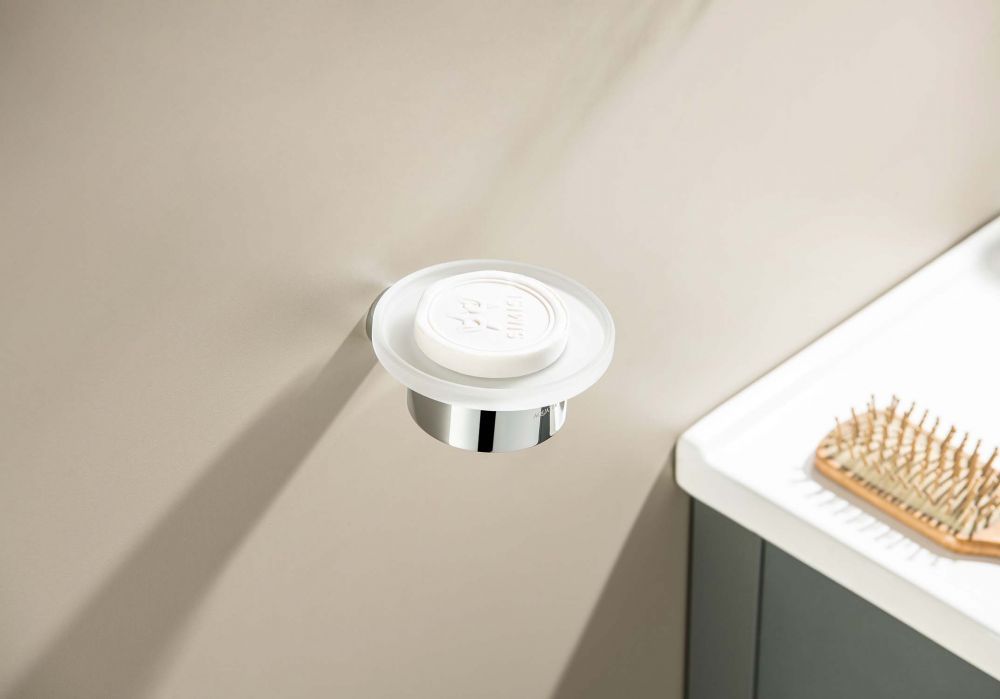 Материал - нержавейка мыльница из матового стекла Держатель из латуни Упаковано в белую коробку Размер: 109*118*51мм