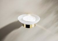 Материал - латунь мыльница из матового стекла Держатель из латуни Упаковано в белую коробку Размеры: 110*124*66мм
